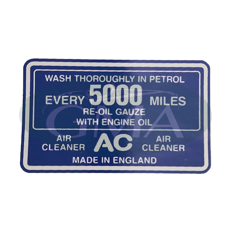 Etichetta adesiva blu AC per filtro aria.