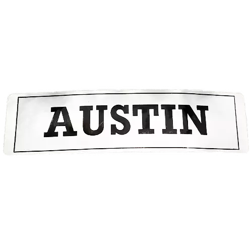 Etichetta coperchio punterie con scritta Austin