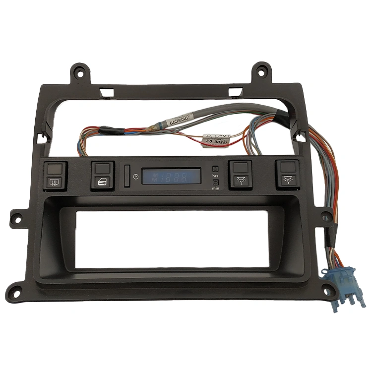 Modulo comandi consolle centrale completo di orologio per cruscotto Jaguar XJ40. Include il pannello interruttori e la sezione orologio della console. Codice articolo DBC6161.